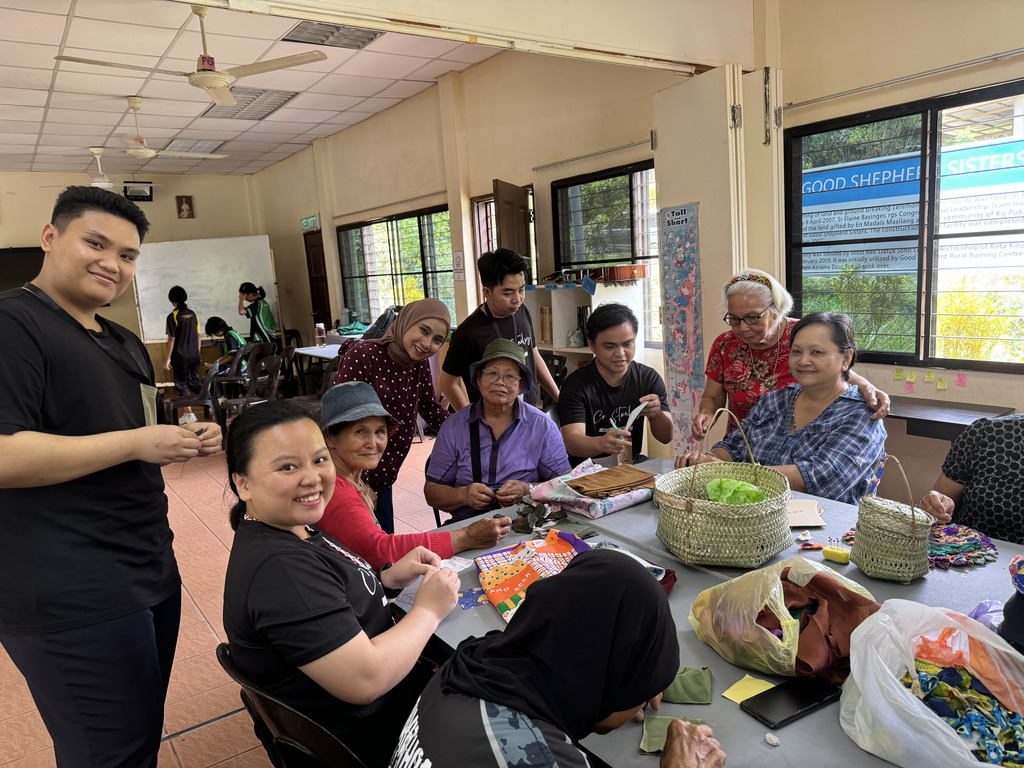 The programme featured a hands-on sewing and craft-making workshop that integrated digital literacy components. Elderly participants were introduced to digital tools and online platforms that allow them to promote their handmade crafts to wider audiences, opening up new possibilities for income generation and digital engagement. Guided by local facilitators and supported by JUC staff and students, the workshop fostered collaborative learning between generations.
