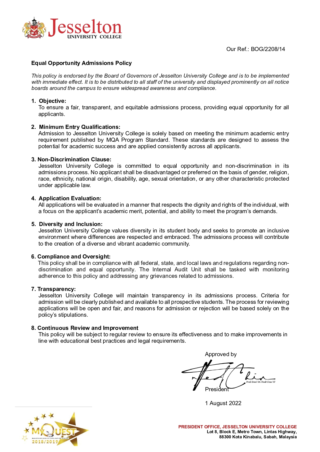 Jesselton University College (JUC) is fully aligned with the Sabah government’s development mission, as outlined by Minister Datuk Seri Hajiji Noor under the Sabah Maju